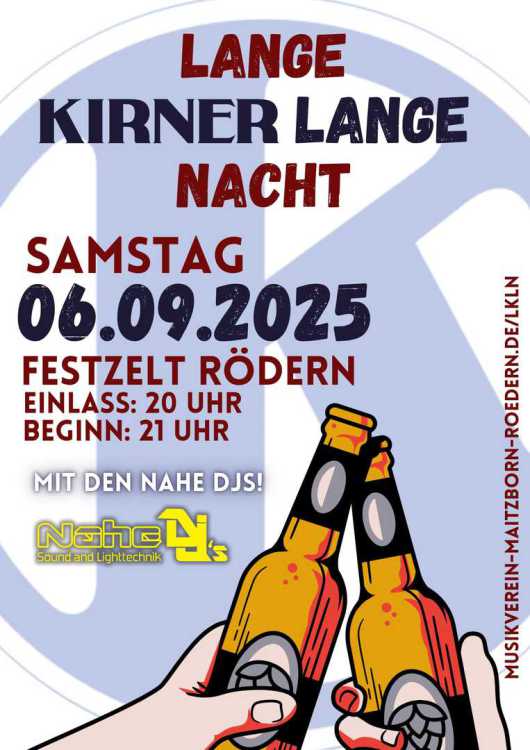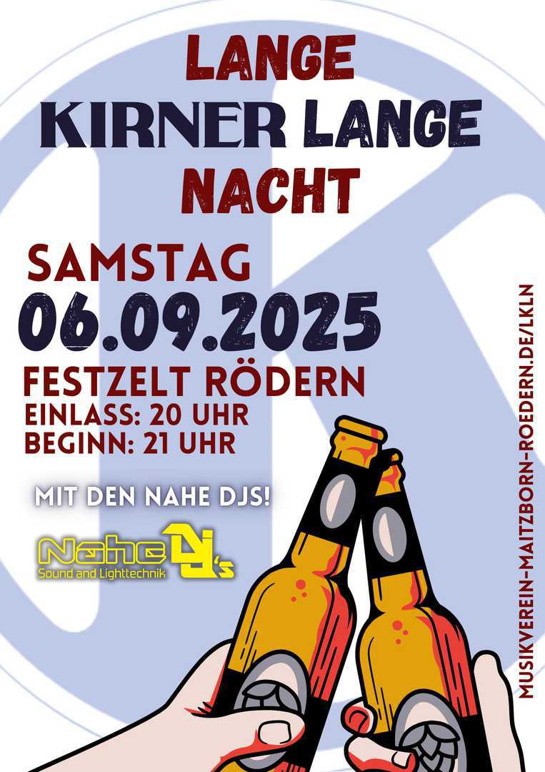 Ab 20 Uhr feiern wir die lange Kirner Lange Nacht im Festzelt in Rödern.